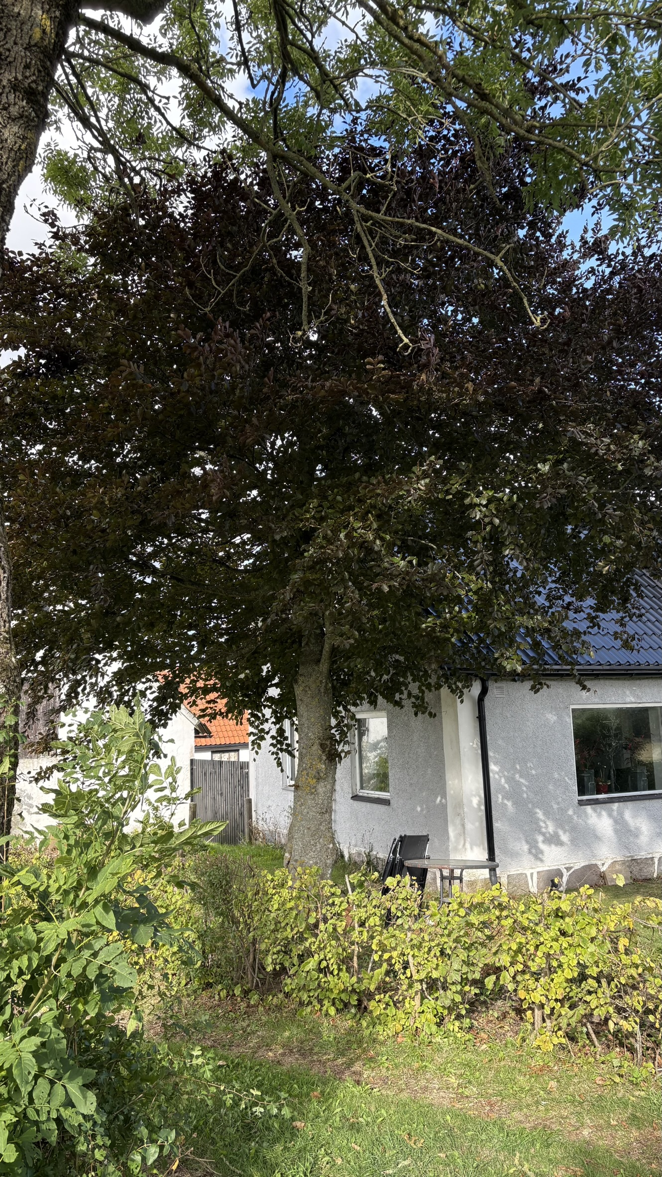 Lotta berättar att de måste tyvärr ta ner endel av träden då de står för nära huset. Tråkigt för träden binder så mycket kol och när de fäller de så avger de mycket av den kol den redan lagrat. Blodboken är riktigt fin!