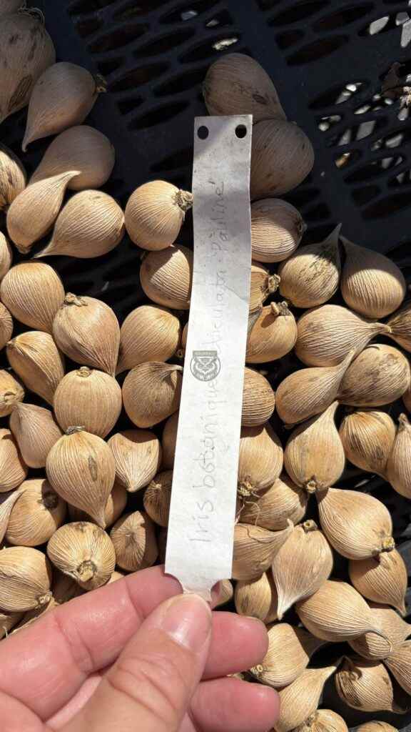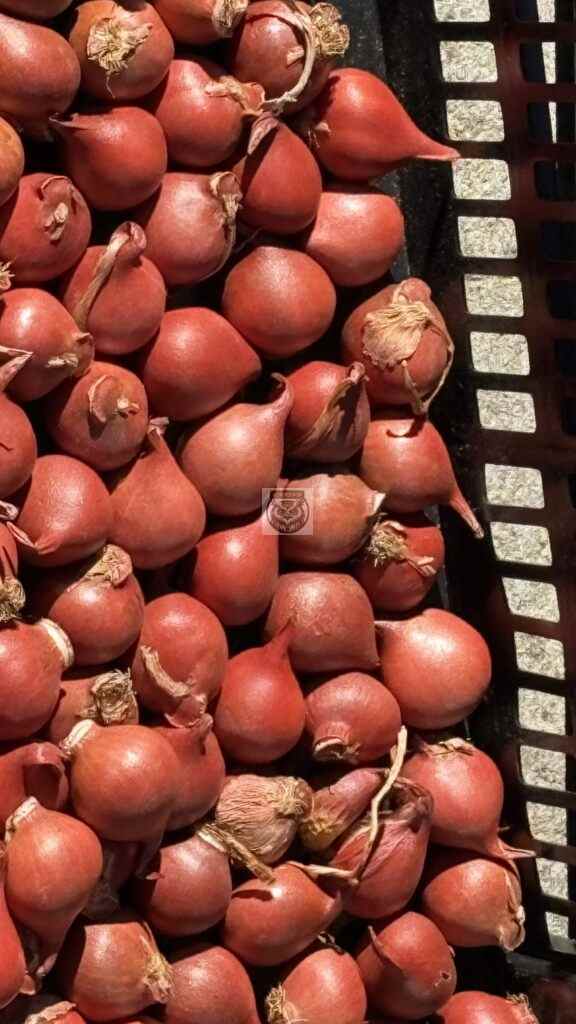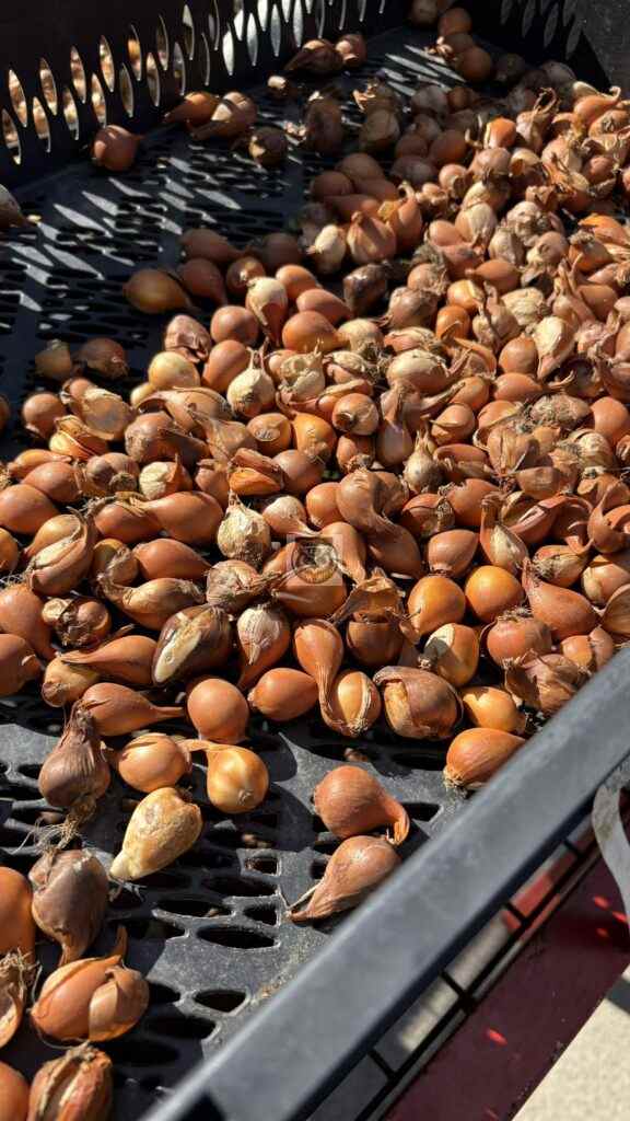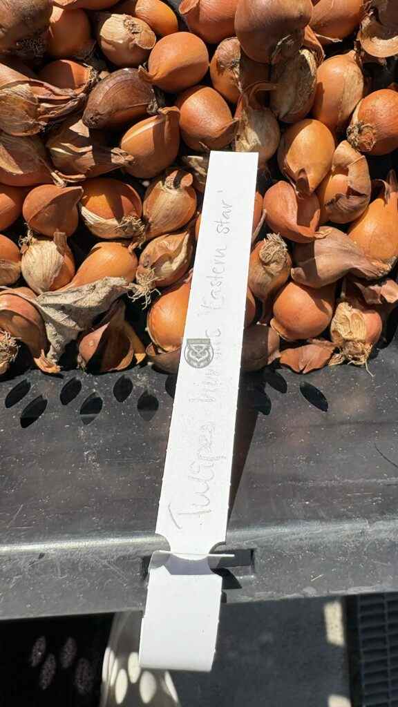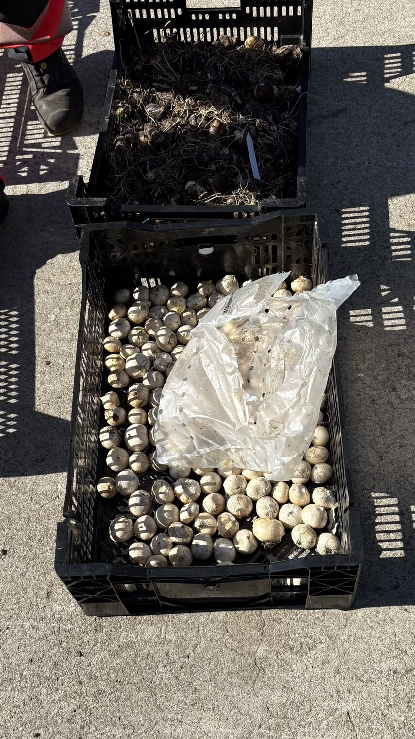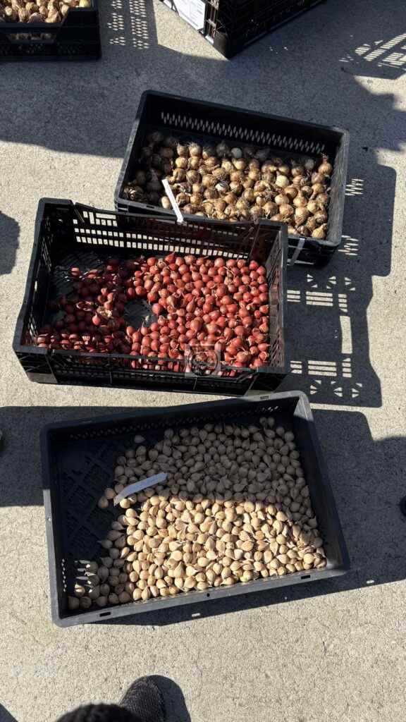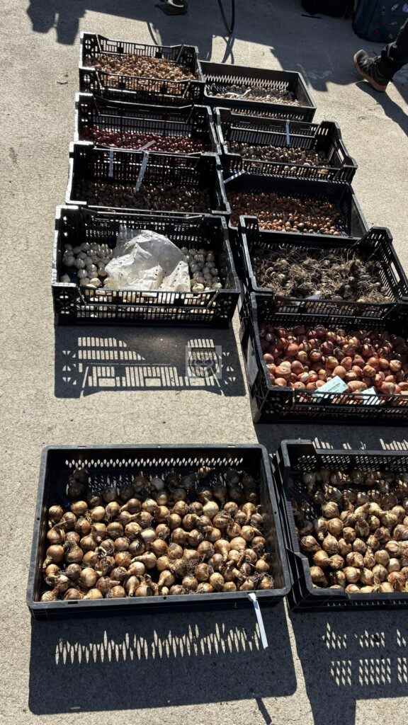Idag fick vi en snabb introduktion om lökarna som ska planteras på Hvilans entrégård. De ingår i det nya projektet med växtplantering i grus. Vi fick se och känna på lökarna som anlände idag och som kommer att planteras i höst. De har planerat inför tidig vår och sen vår, därefter kommer perennernas olika blomningstider.