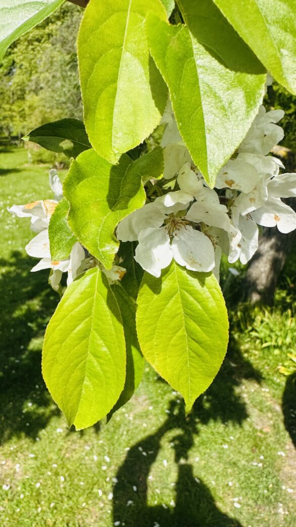 Prydnadsäpplen är apel och små frukter. Lövfällande och lågvuxet träd. Ej rutlikt uppsprucken bark som hos päron (Pyrus communis). Årsskott och knoppar håriga (kala hos M. sylvestris). Knoppar tryckta mot skottet, utstående hos t.ex. plommon. Blad enkla med lätt sågad bladkant. Filthåriga undertill. Saknar den vita mittrand och det långa skaftet som päron har. Vita-rosa, femtaliga apelblommor i maj- juni. Ståndarknappar gula (röda-violetta hos päron).