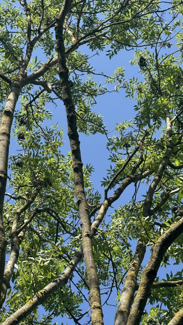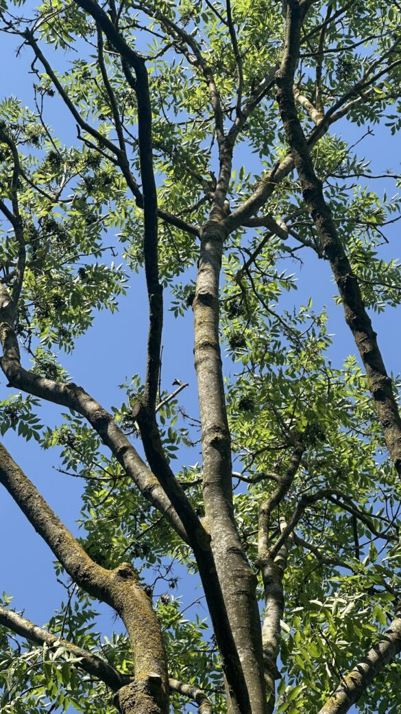 Asken är det träd som förknippas med ’Yggdrasil, världsträdet’. Kallas även kungaträdet då löven kommer sist på våren men faller först på hösten. Tyvärr hårt drabbad av askskottsjuka som orsakas av sporsäckssvampen Chalara fraxinea (= Hymenoscyphus pseudalbidus).