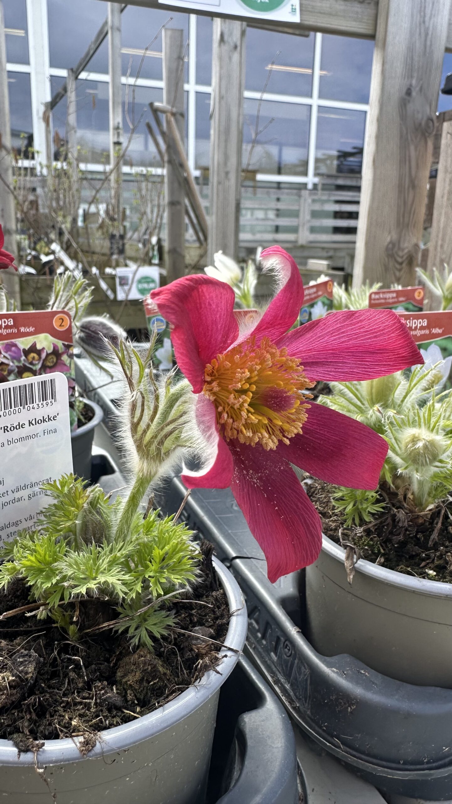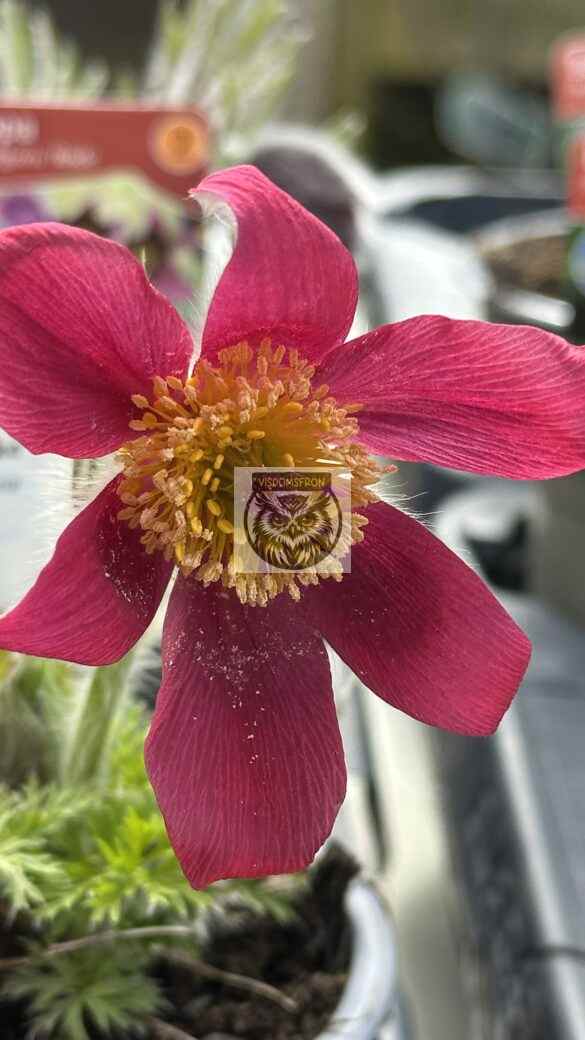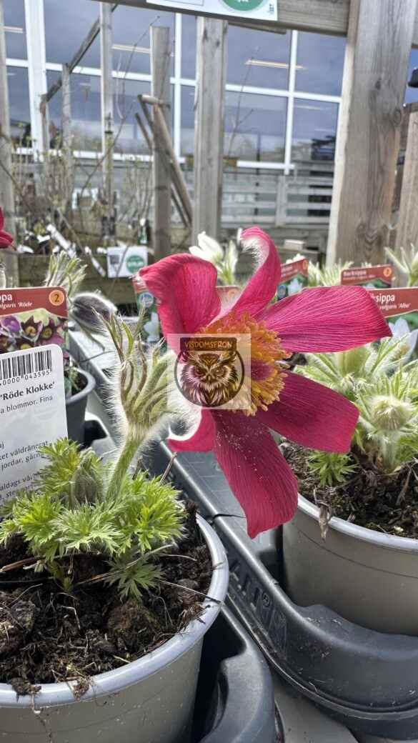 Gammaldags vårblomma för grusträdgård, stenparti och rabatt. Har ulligt grönt bladverk och klockformade blommor i rödviolett. De klargula ståndarna lyser upp och lockar till sig de tidigaste pollinatörerna. Efter blomningen bildas dekorativa fröställningar.