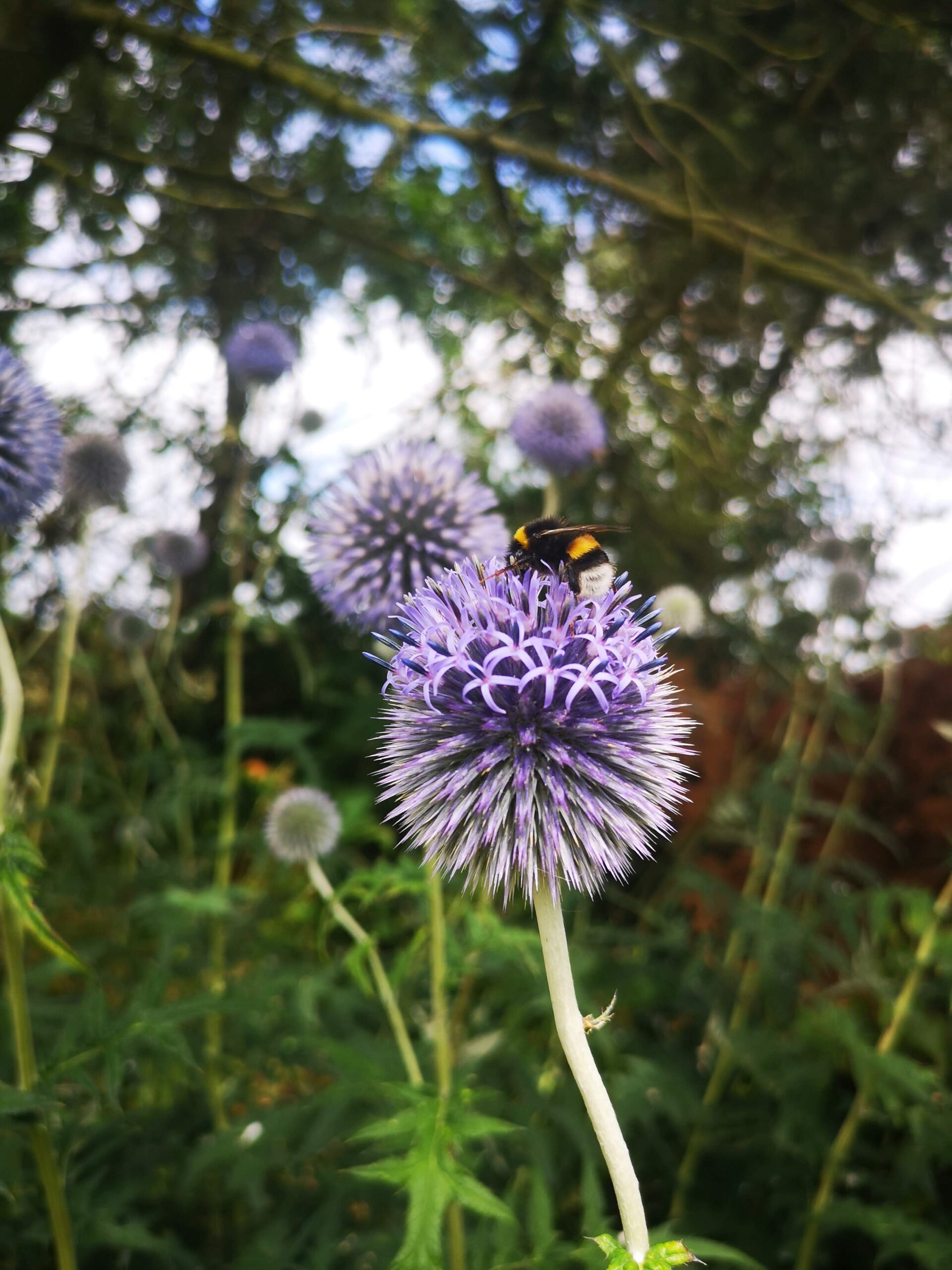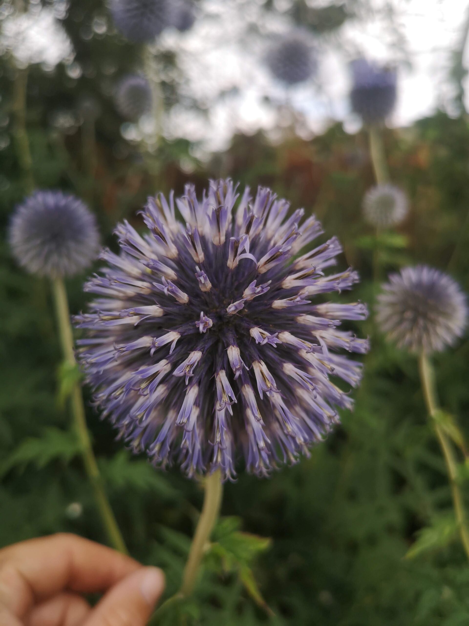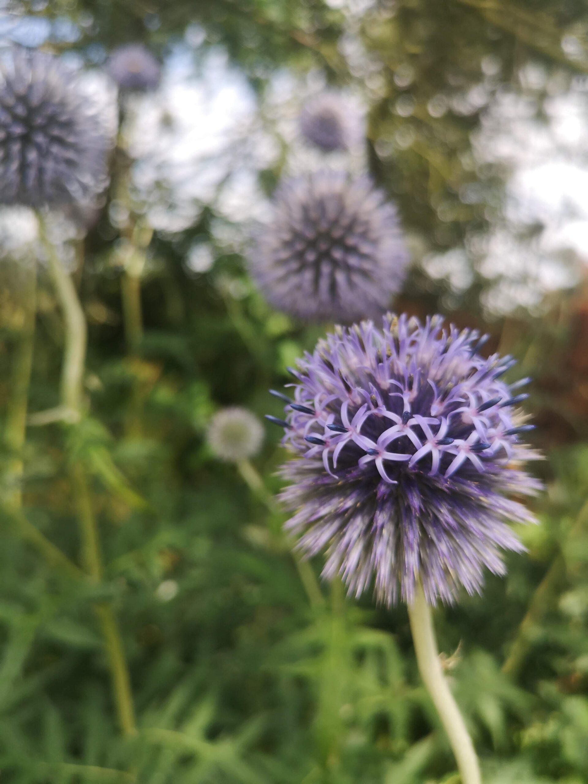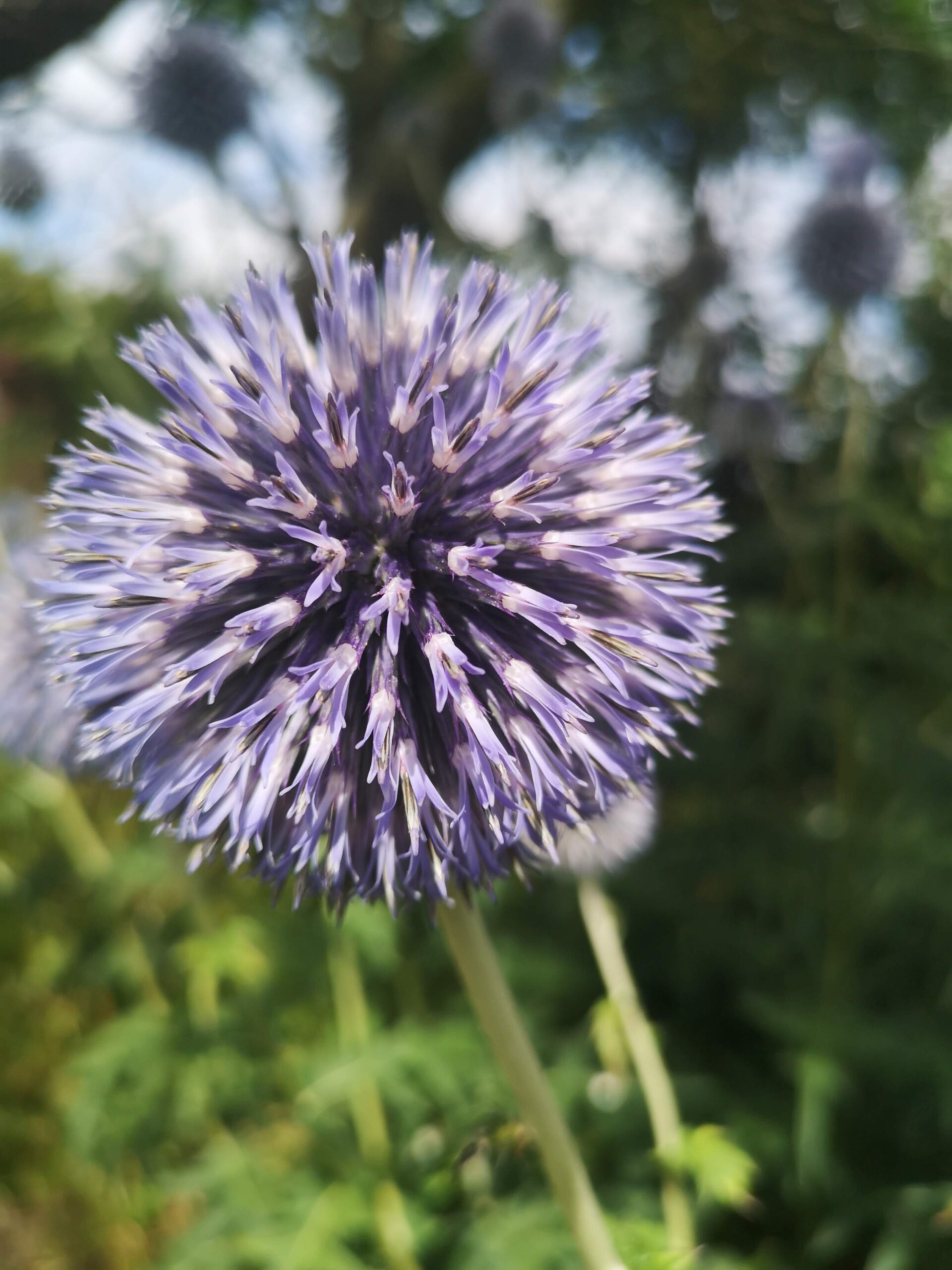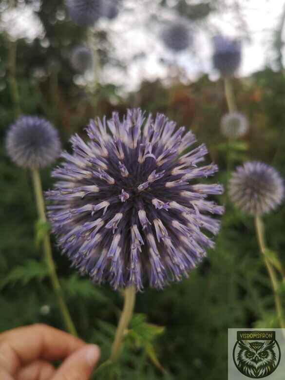 Hög, pampig och kraftigt växande perenn. Blomställningarna är stålblå och blommorna är blålila. Mycket omtyckt av fjärilar och andra pollinatörer. Blommorna går bra att torka och är fin att använda som snittblomma.