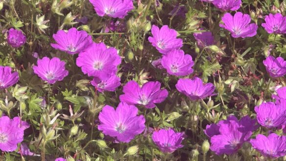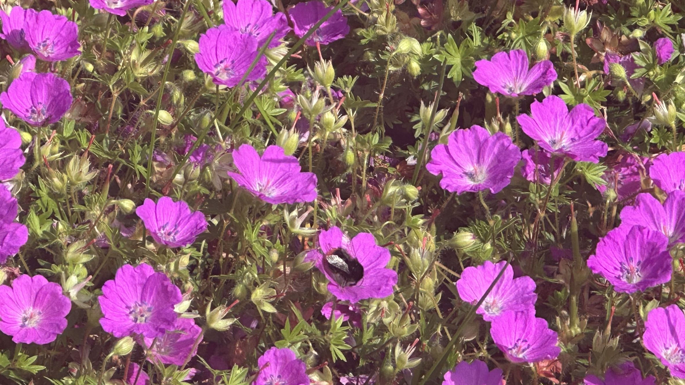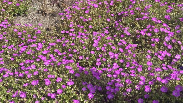 Perenn ört som blir 15-30 cm hög. Blommor femtaliga och violettröda, finns även i vita sorter. 1 stift, fem märken, tio ståndare. Blad små, mörkgröna och flikiga. Får ofta en röd höstfärg i bladen. Långnäbbad klyvfrukt som rullas upp nedifrån. Härstammar från Europa, Kaukasus, Armenien. Vildväxande i Sverige. Används vanligtvis i rabatter samt stensättningar.