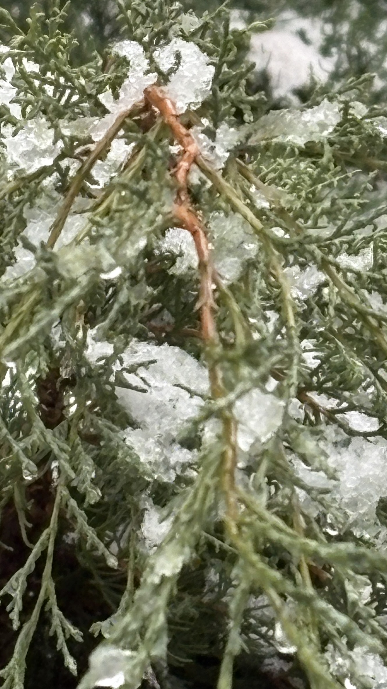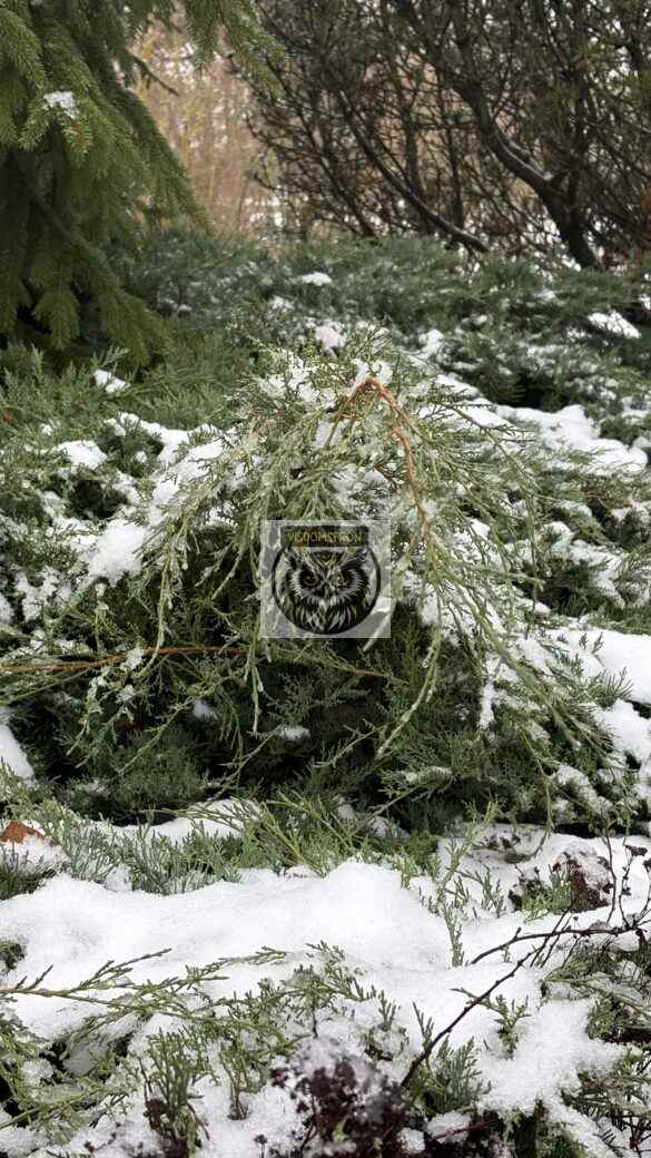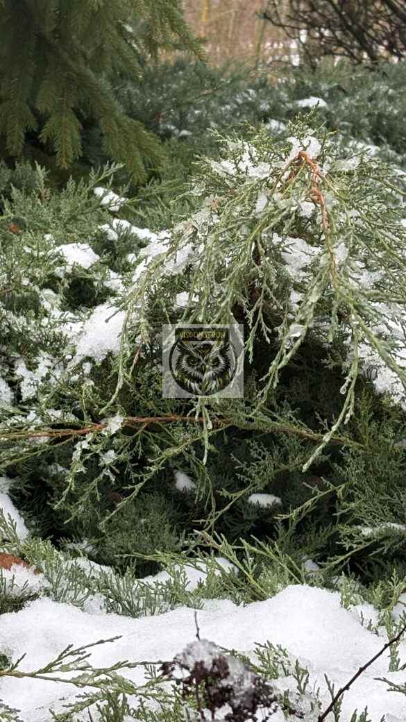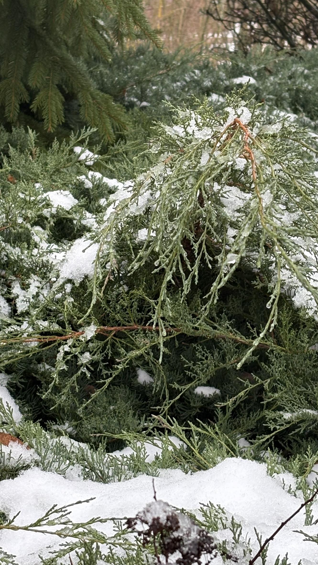 Brett och yvigt växtsätt, 5-7 meter bred men bara ca 1 m hög. Grenarna ligger ofta i tydliga täta horisontella lager. Barren är korta, fjällika och blågråa till grågröna. Barken är gråbrun och flagnar av i långsmala remsor på äldre exemplar. Honplanta som får runda, grå-svarta bärlika kottar. Kommer från SÖ Kanada, C, Ö och S USA.