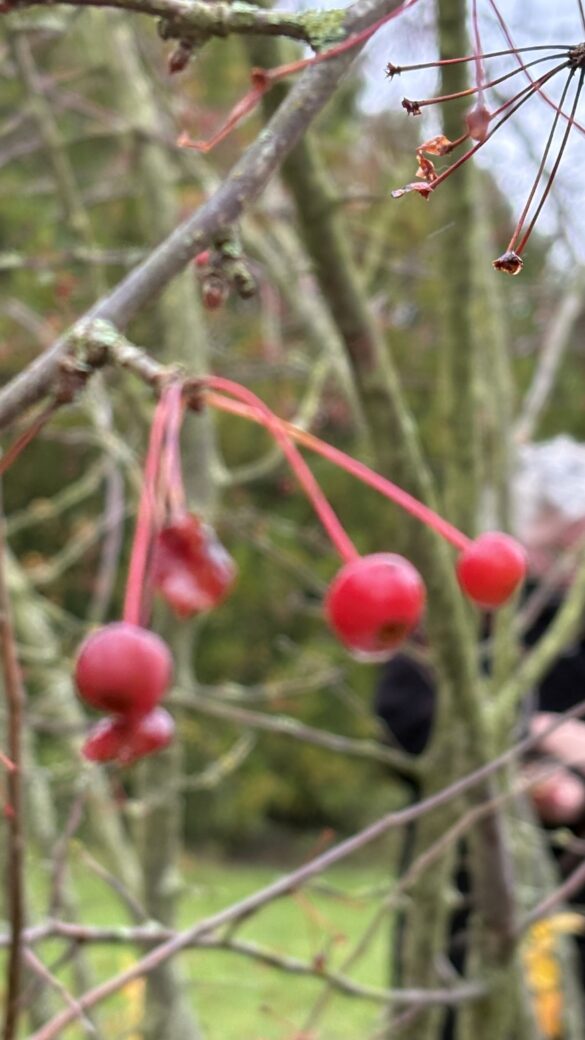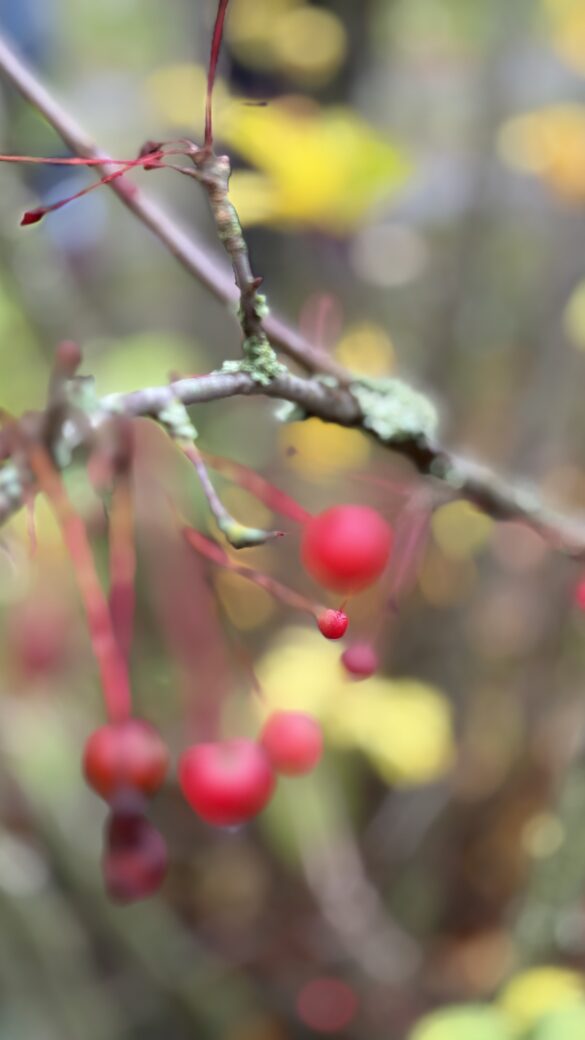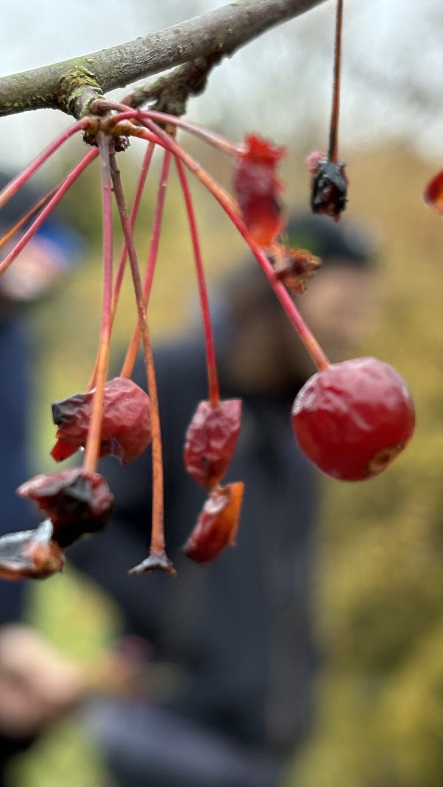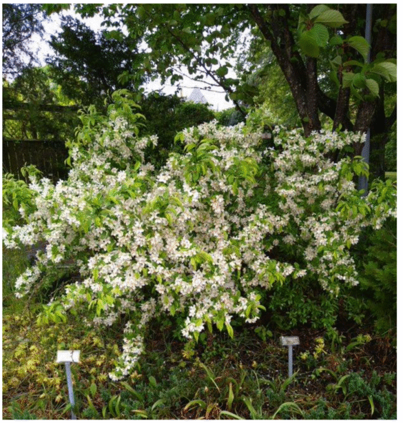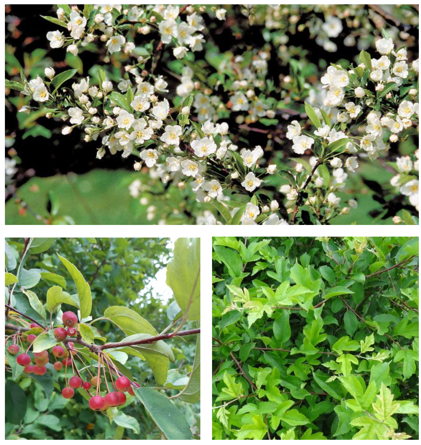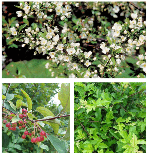 Lättodlad lövfällande buske som blir 2-3 meter hög. Bladen är enkla, med sågad kant, strödda. Enstaka blad är loberade! Gul-orange höstfärger. Knopparna är rosa. Blommar med många vita blommor. Små (1 cm) röda ätliga skenfrukter. Kommer från Japan. Lämplig som häck och i samplanteringar. Uppskattad av fåglar både som skydd och för frukterna. Vildformen står i busksortimentet och når 6 m.