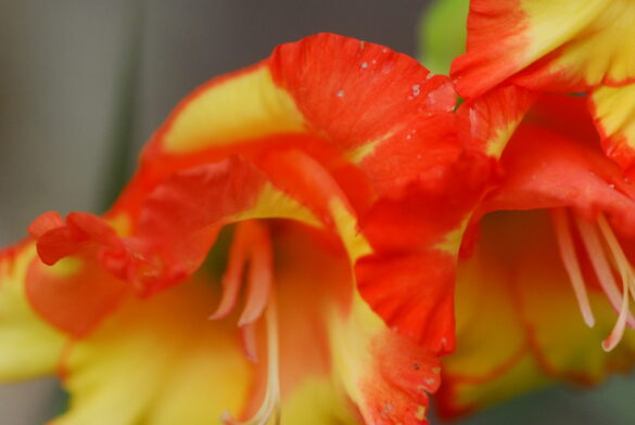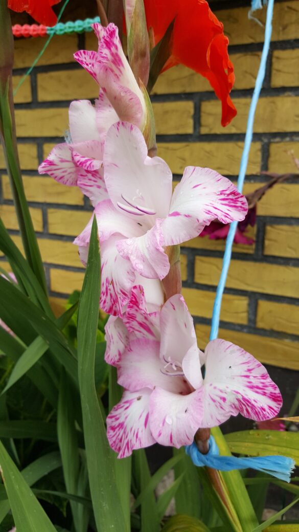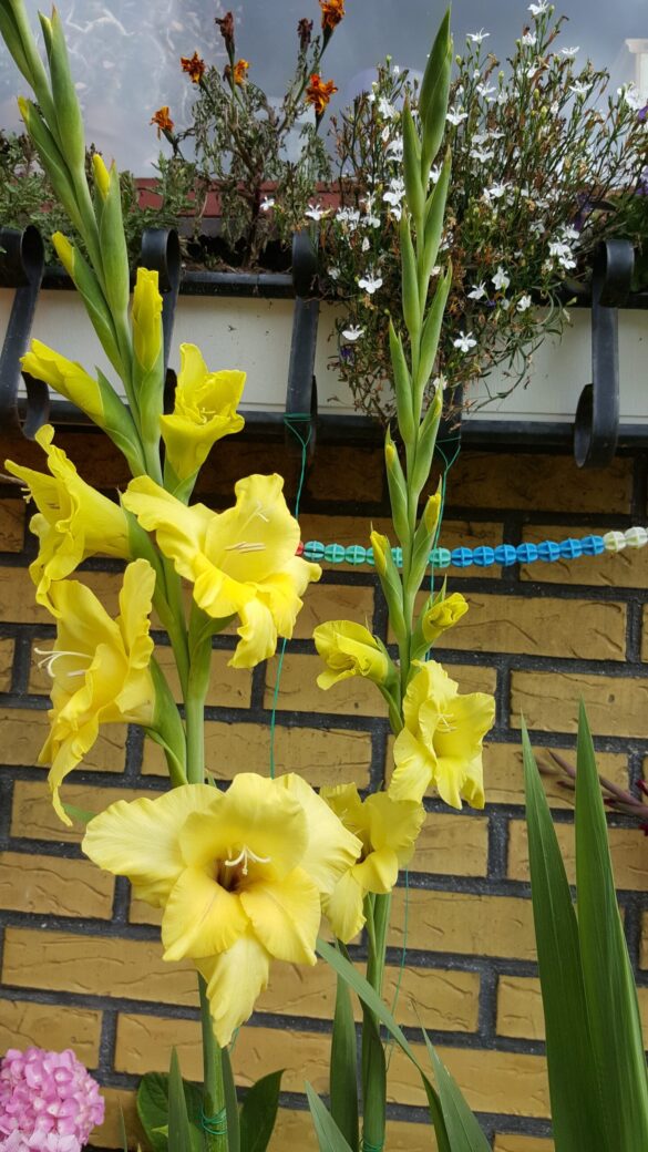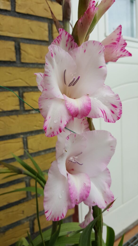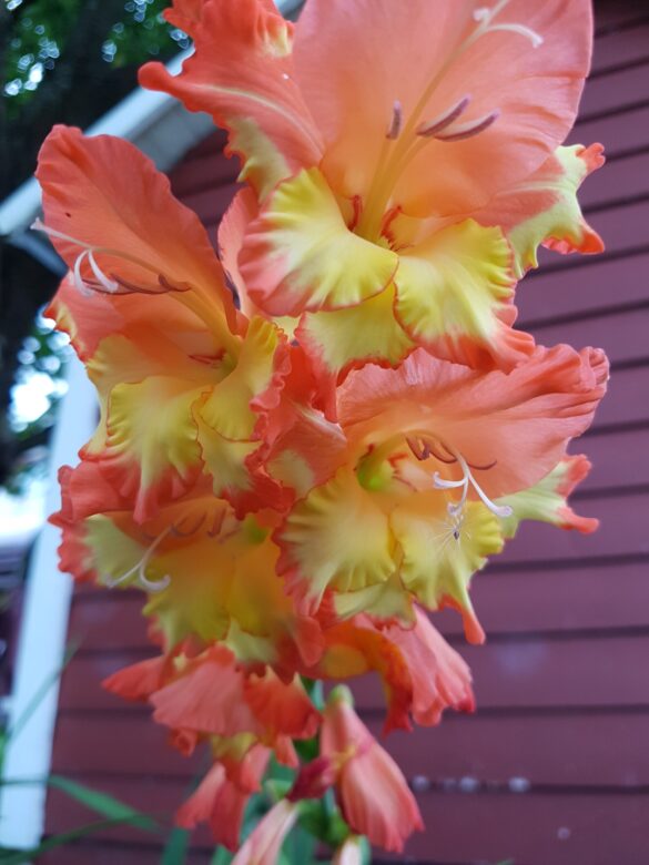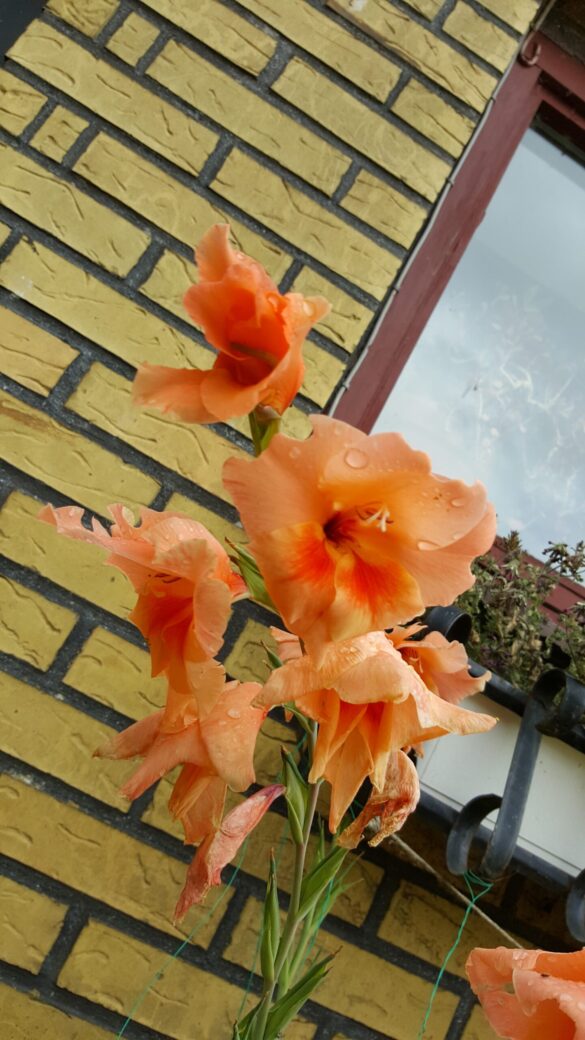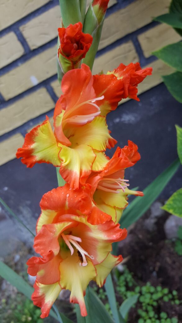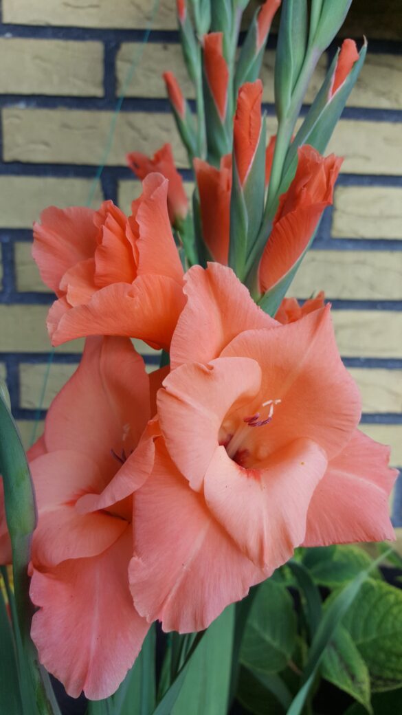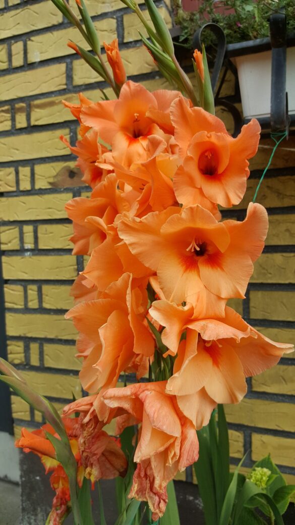 Gladioler växer från en knöl (inte en lök) och har långa, smala, svärdsformade blad som växer i upprätta, solfjäderformade klasar. Blommorna sitter samlade i en dramatisk, ensidig blomställning (ett ax) på en hög, robust stjälk som kan bli upp till 60–180 cm hög. Varje blomma är trattformad och öppnar sig successivt från botten och uppåt. De finns i en imponerande bred palett av färger, inklusive nyanser av vitt, grädde, gult, orange, rött, rosa, lavendel, lila och till och med grönt. Många sorter har även flerfärgade eller krusade kronblad. Gladiolus kallas också sabellilja/svärdslilja. I romarriket var blomman en symbol för de modiga gladiatorerna. Gladioler är fantastiska snittblommor. Eftersom de blir både höga och stora gör de mycket väsen av sig själva i en vas, men de är också fina i buketter tillsammans med andra blommor. Klipp stjälkarna när de nedersta blommorna börjar slå ut och ställ dem i vatten.