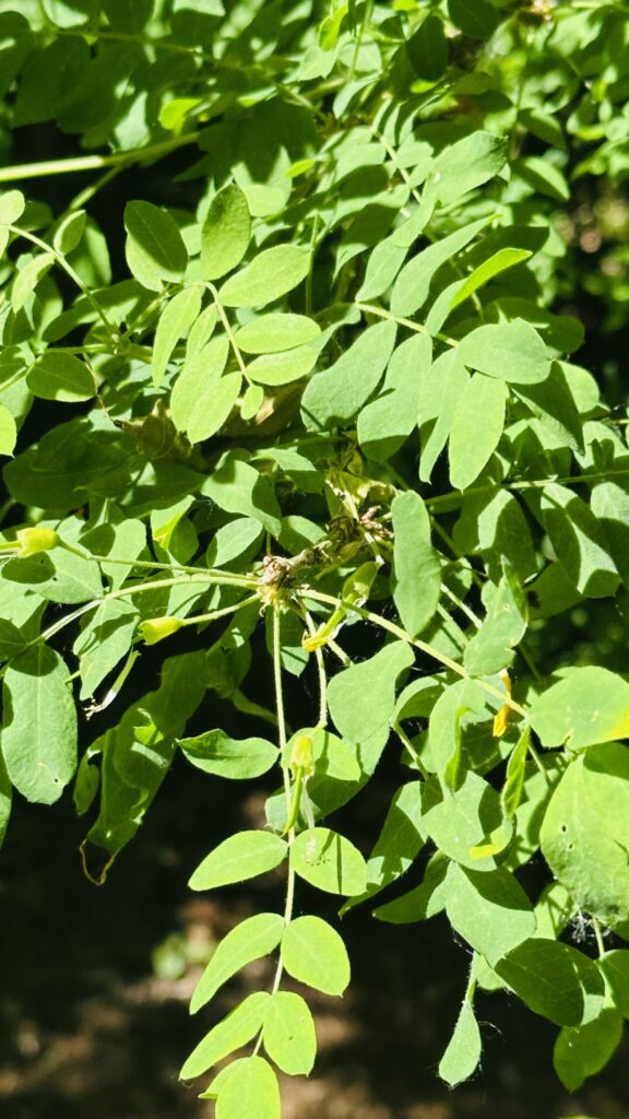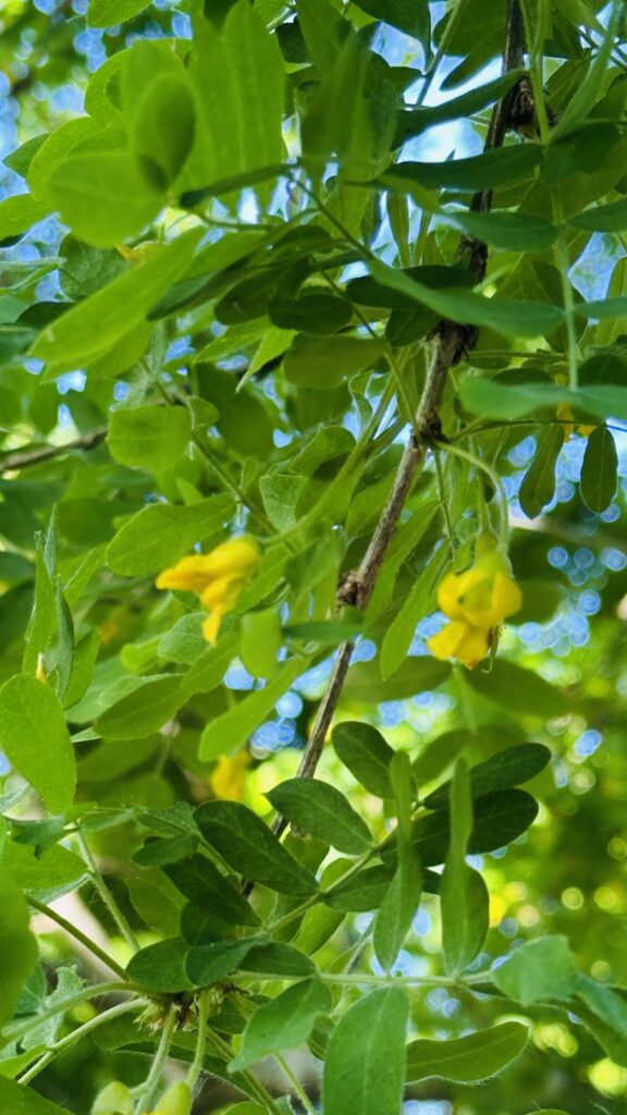 Lövfällande storväxt (5m) buske med illaluktande grön bark. Parbladiga, 4-6 småblad utan uddblad (Laburnum har trefingrade blad). Gula fjärilsblommor som sitter enstaka eller få tillsammans i flocklik samling i bladvecken. Baljan är tre till sex centimeter lång, spetsig, och innehåller många frön. Används som häck eller prydnadsbuske.
