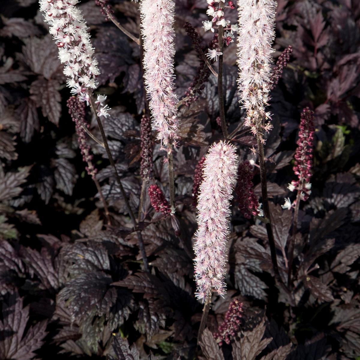 En stilig perenn som gör sig bra som solitär. Blir 100-150 cm hög. Flikiga mörkt röda blad. Blommar med små, vita blommor på ax under augusti till september. Purpurröda knoppar och foderblad. Förökas genom delning. Kan fröförökas, men det tar mycket lång tid. Kräver kontinuerlig tillgång på näring så den bör gödslas. Gödsla dock inte för mycket, då silveraxet växer vegetativt på bekostnad av blomningen.