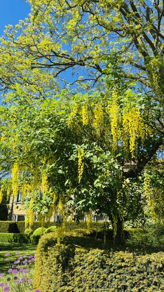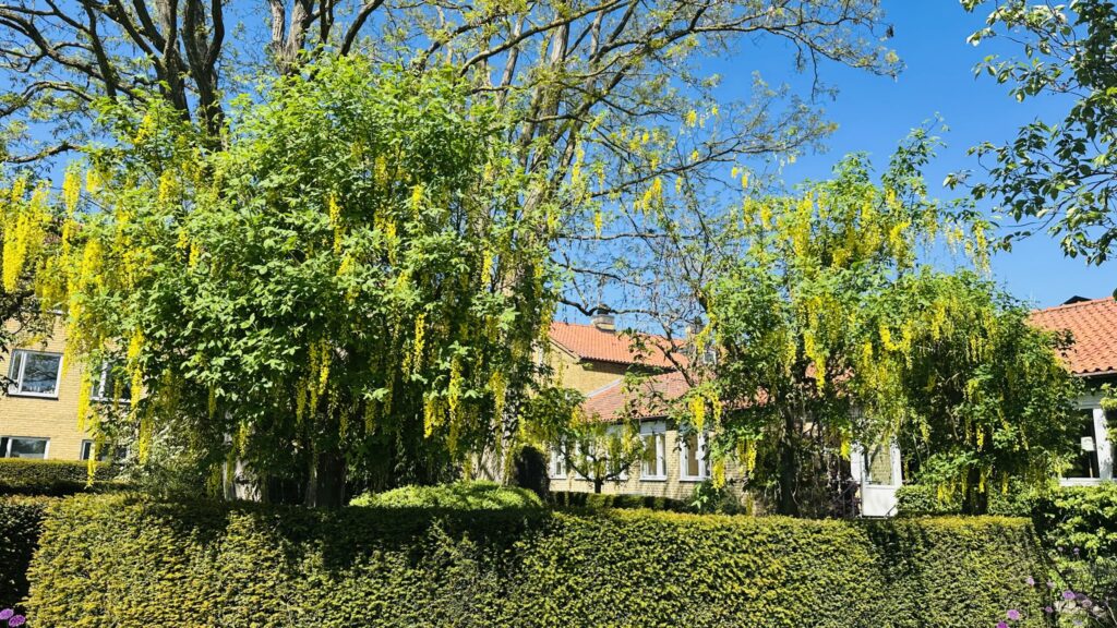 Laburnum har okänt ursprung men användes av romaren Plinius som namn för giftiga ärtbuskur. Anthony Waterer (1822-1896) var en engelsk plantskolist.