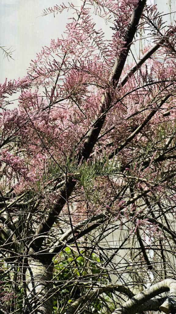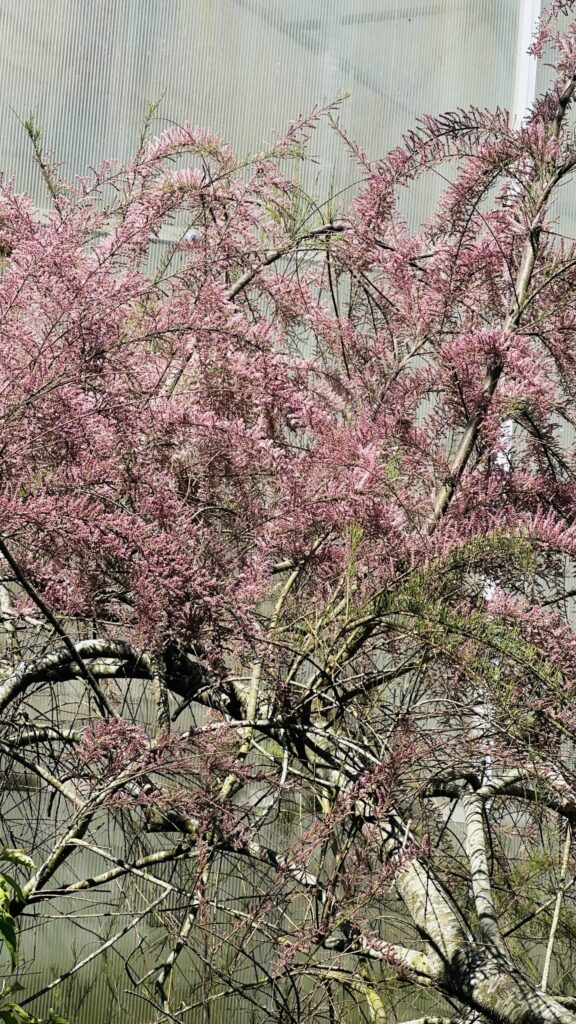Tamarix, från Tamaris, vilket är en flod i Spanien där några av arterna finns. Parviflora = liten blomma.