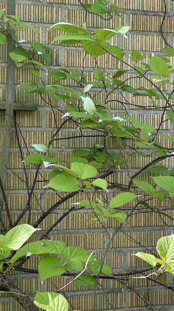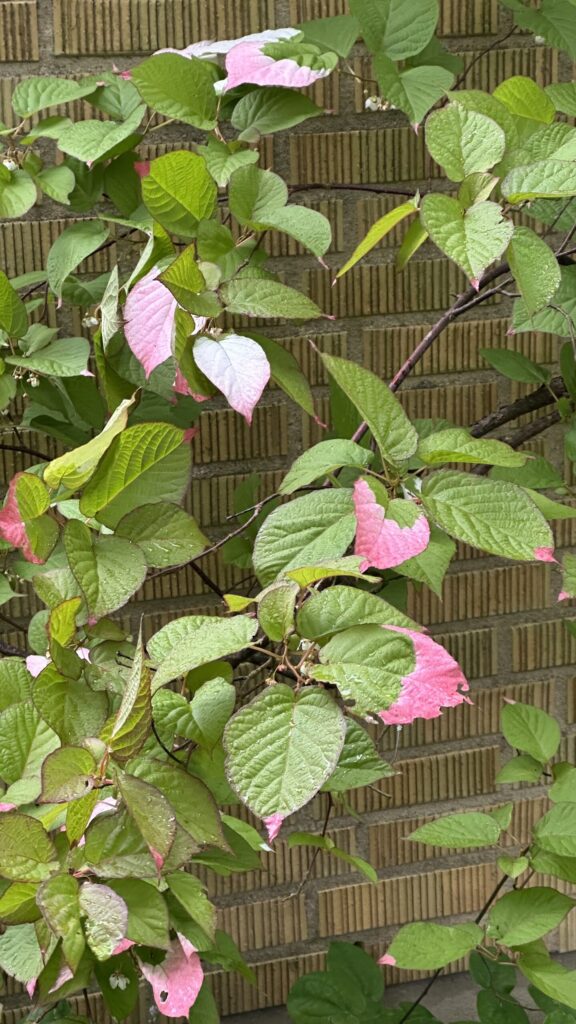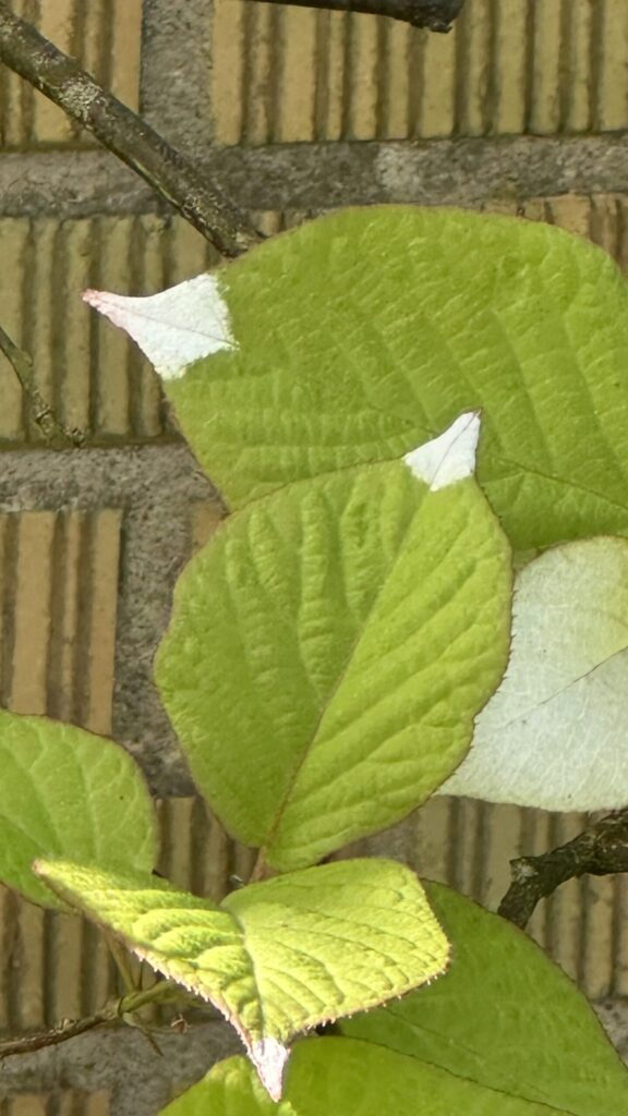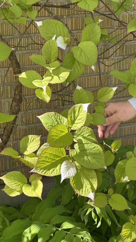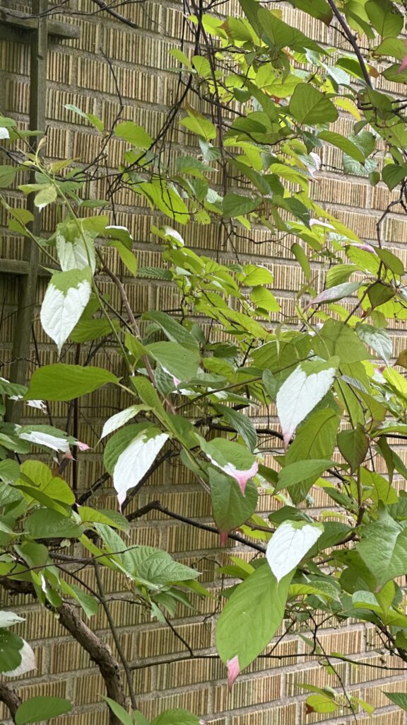 Kameleontbuskens brokiga blad väcker uppmärksamhet redan på avstånd. På försommaren verkar det som om någon skulle ha dragit vit färg över de yttre delarna av bladen. Efter blomningen avtonas den vita färgen och blir rödaktig. Kameleontbusken är i allmänhet en tvåbyggare det vill säga, rankan har separata hon- och hanplantor. Däremot är rankor med sitt genetiska ursprung i kyliga områden oftast samkönade, det vill säga samma ranka har både hon- och hanblommor. Underarten ’Annikki’ är en sådan. Den mest odlade är den vitfläckiga rankan är en hanplanta som vi har på skolan. Klängväxt som kan bli 5-7 meter hög.