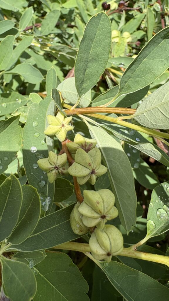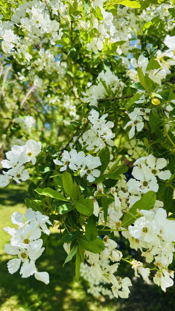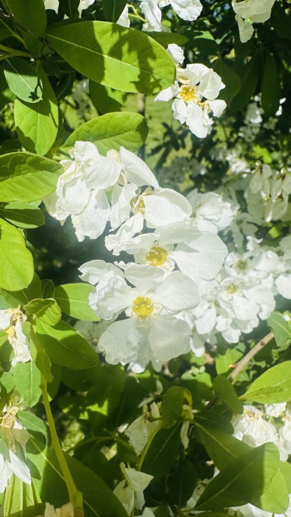 Yvig lövfällande buske som blir 2-3 meter hög och ungefär lika bred. Vackra pärllika blomknoppar. Vacker under lång tid – först med blomknopp, sedan med vita femtaliga blommor under sommarens första hälft (rikblommande) och avslutningsvis fina fruktställningar. Frukten är en femkantig kapsel med vingade frön. Praktfull som solitär buske men vill gärna stå med andra.