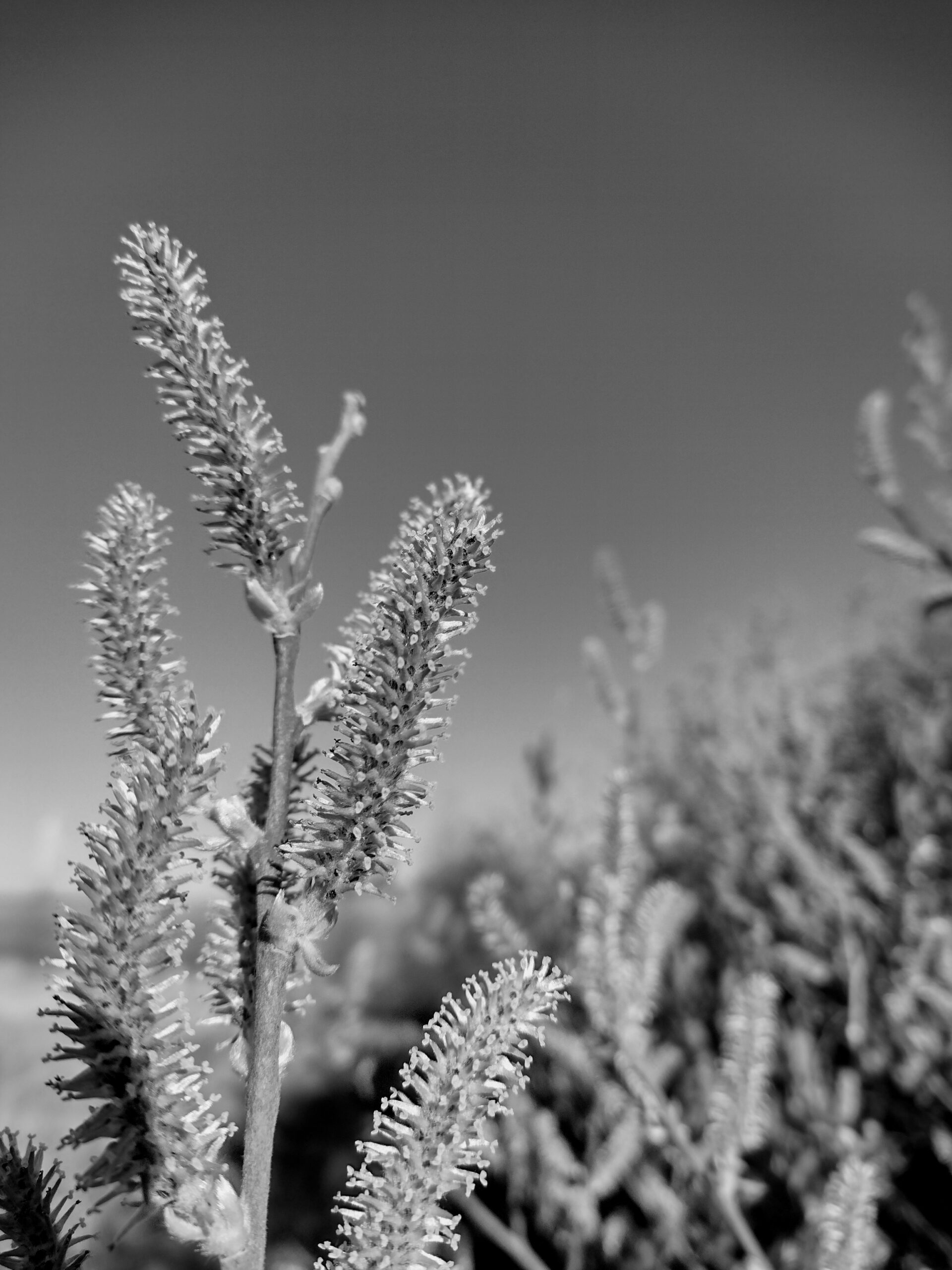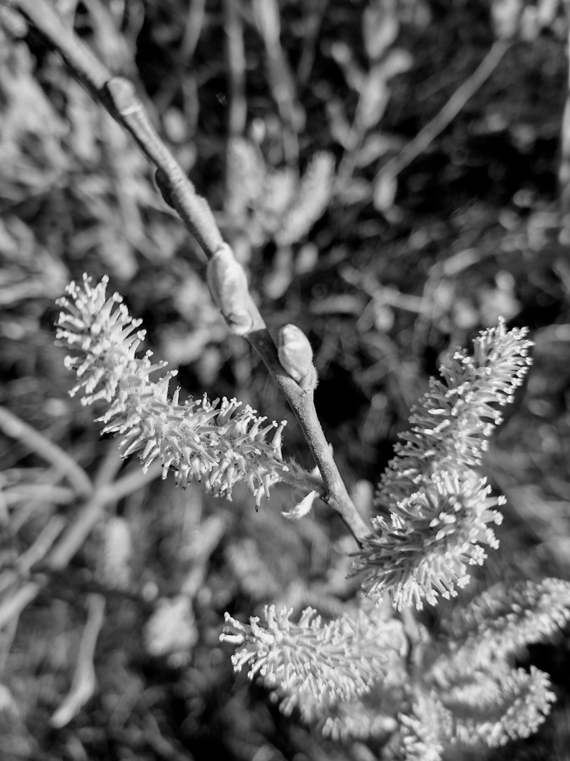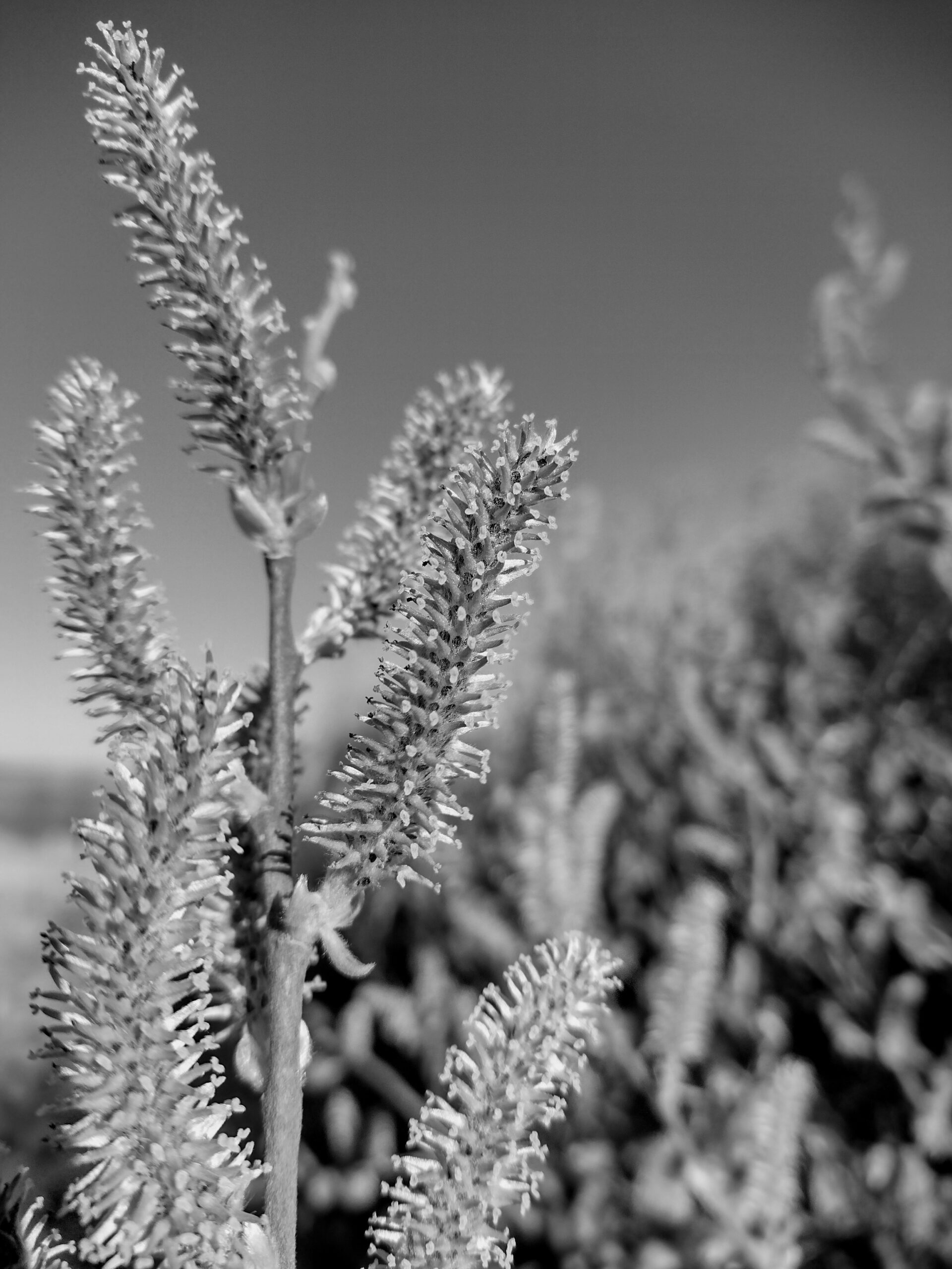 Lövfällande busk- eller trädformad art som kan bli upp till 10 meter hög. Gråaktig, skrovlig bark. Bladen är stora, ovala och bredast på mitten, kanten är naggad. Bladens ovansida är kal eller hårig, vanligen mörkgrön, och undersidan är fint sammetsluden. Blommar med gula, fluffiga blommor på bar kvist i april- maj. Härstammar från Europa, V Sibirien och Kaukasus.