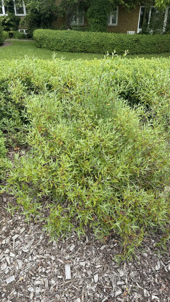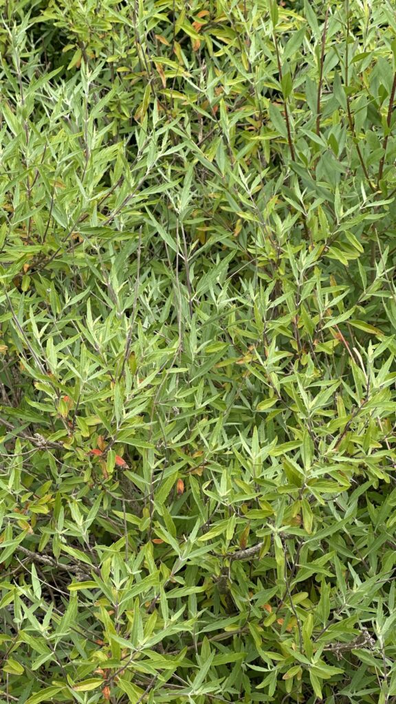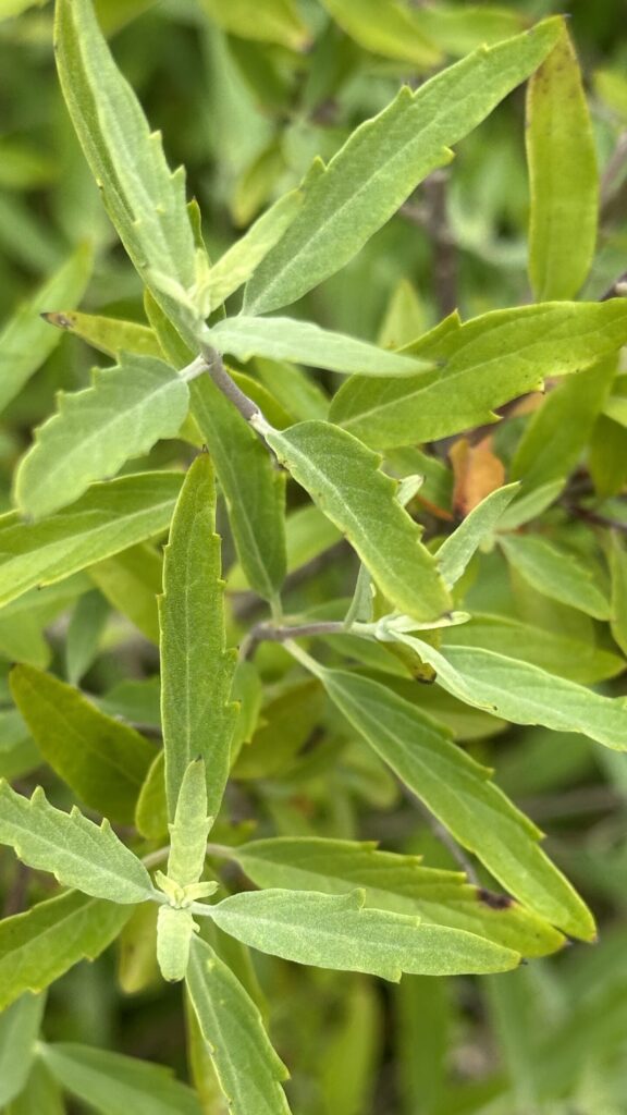 Buske som kan bli uppåt 1 meter hög. Fryser ibland ner på vintern men kommer tillbaka igen. Blommar sent på säsongen, i september-oktober, men intensivt blåa klockblommor med långa ståndare. Mycket omtyckt av insekter på grund av sina sena blomning, speciellt bin. Bladverket är dimgrått till silvrigt med helbräddade eller flikiga kanter. Kommer ifrån Asien. Används mestadels i rabatter. Doften påminner om starkt doftande lavendel eller manukka honung.