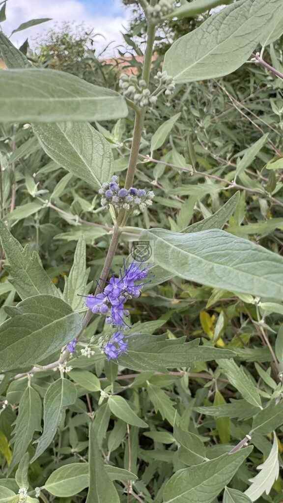 Caryopteris betyder kärnvinge, syftar på frön. Clandonensis hybrid skapas i West Clandon 1930.