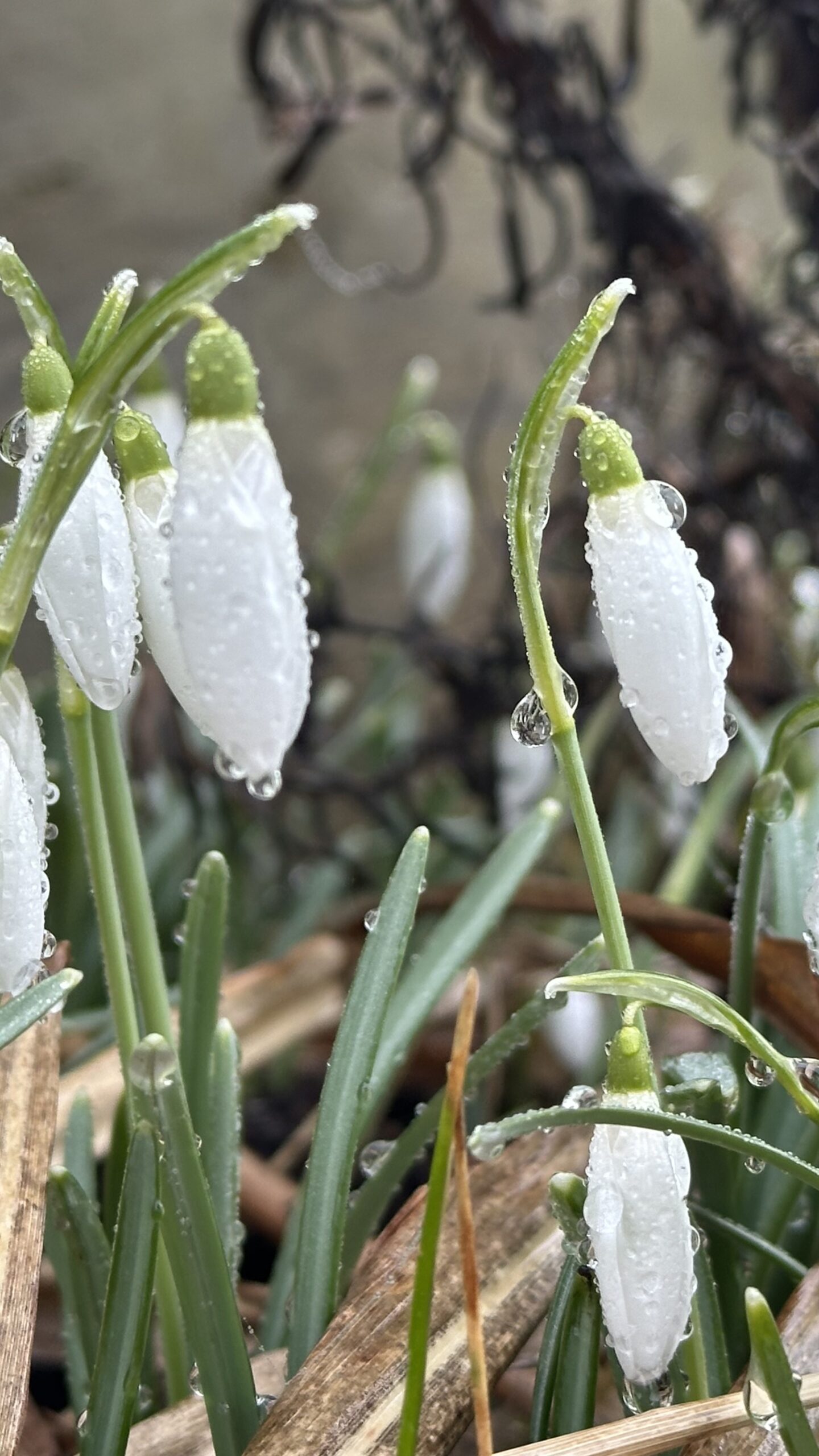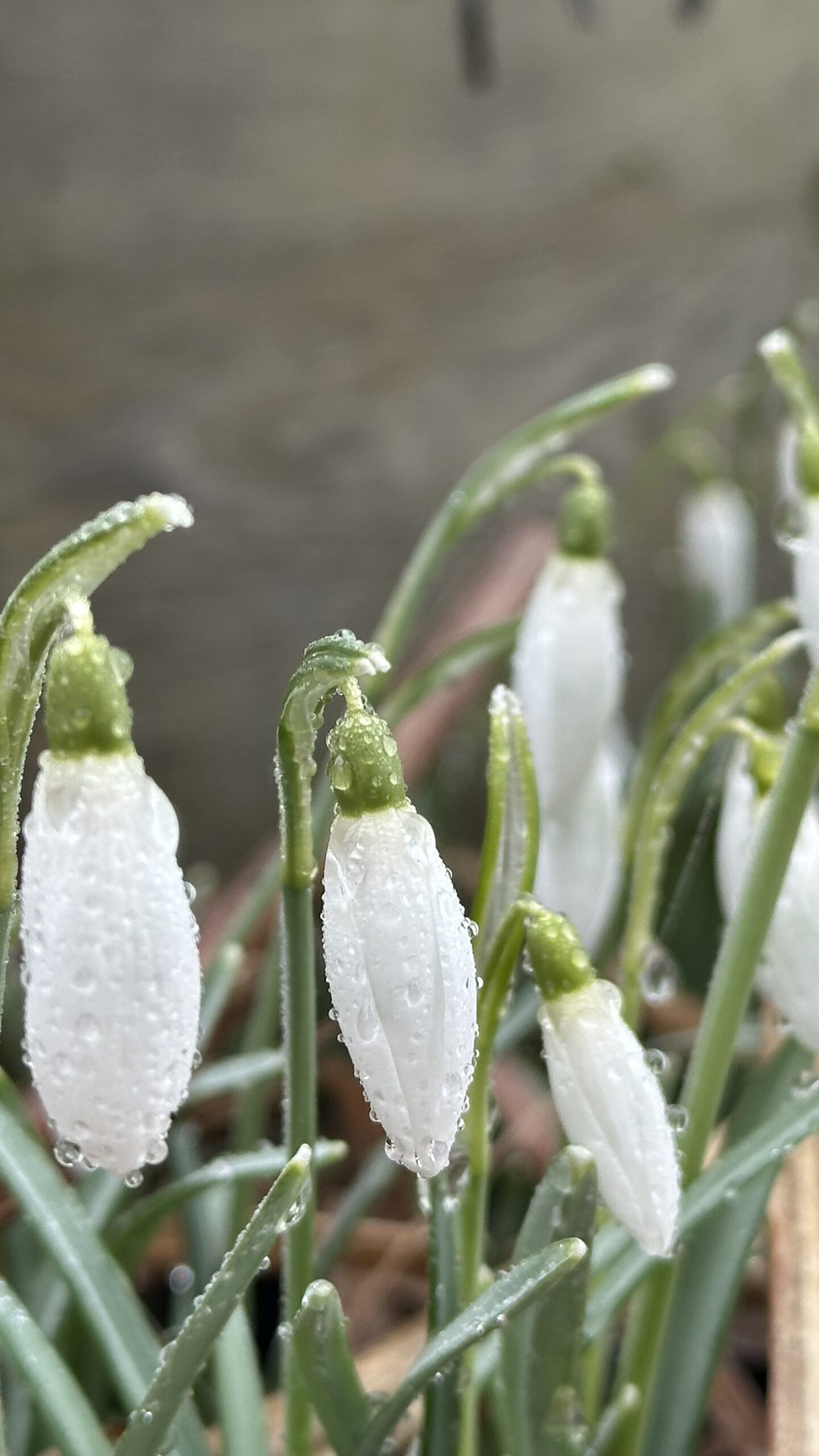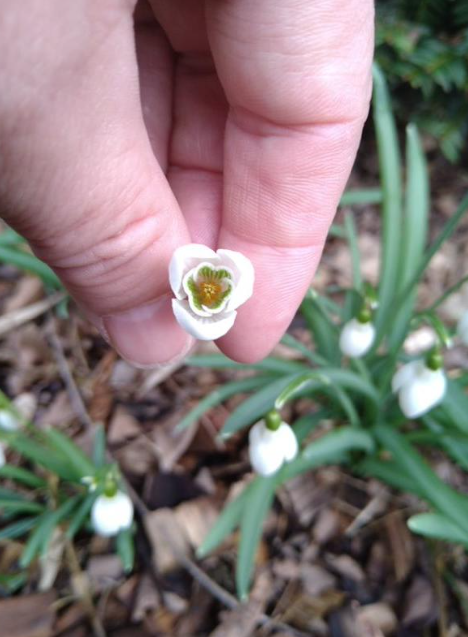 Tidigblommande lökväxt med äkta lökar. Blir 10-20 cm hög och får grågröna platta blad som växer upp 2 stycken ur varje lök. En blomma per stjälk och lök i januari-april, svagt doftande. Nickande snövita blommor med tre stora och tre små kalkblad. Inre kalkblad med grön fläck vid basen (sinusmärke). Insänkt fruktämne. Kommer från europa, dock ej i norr.