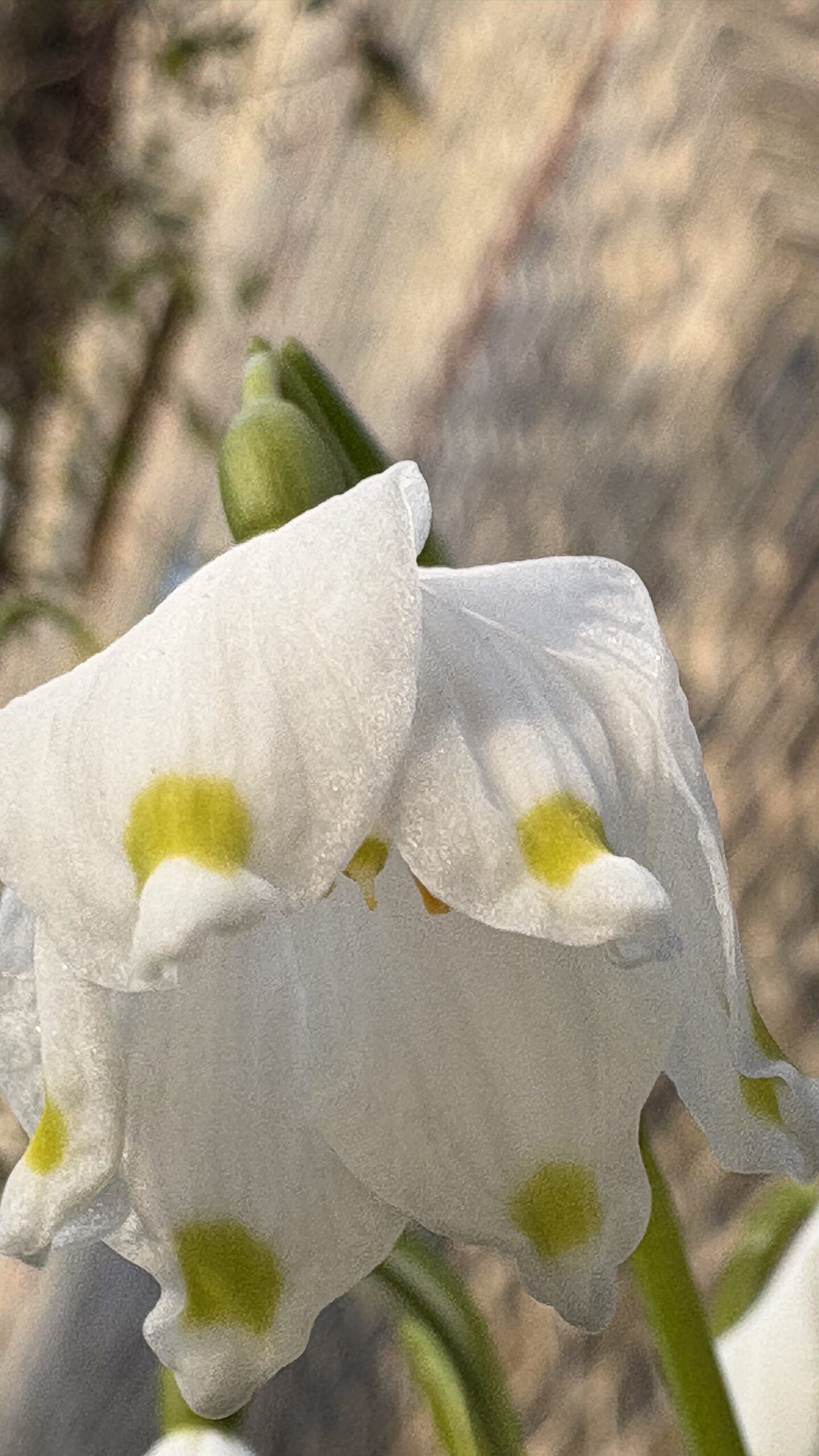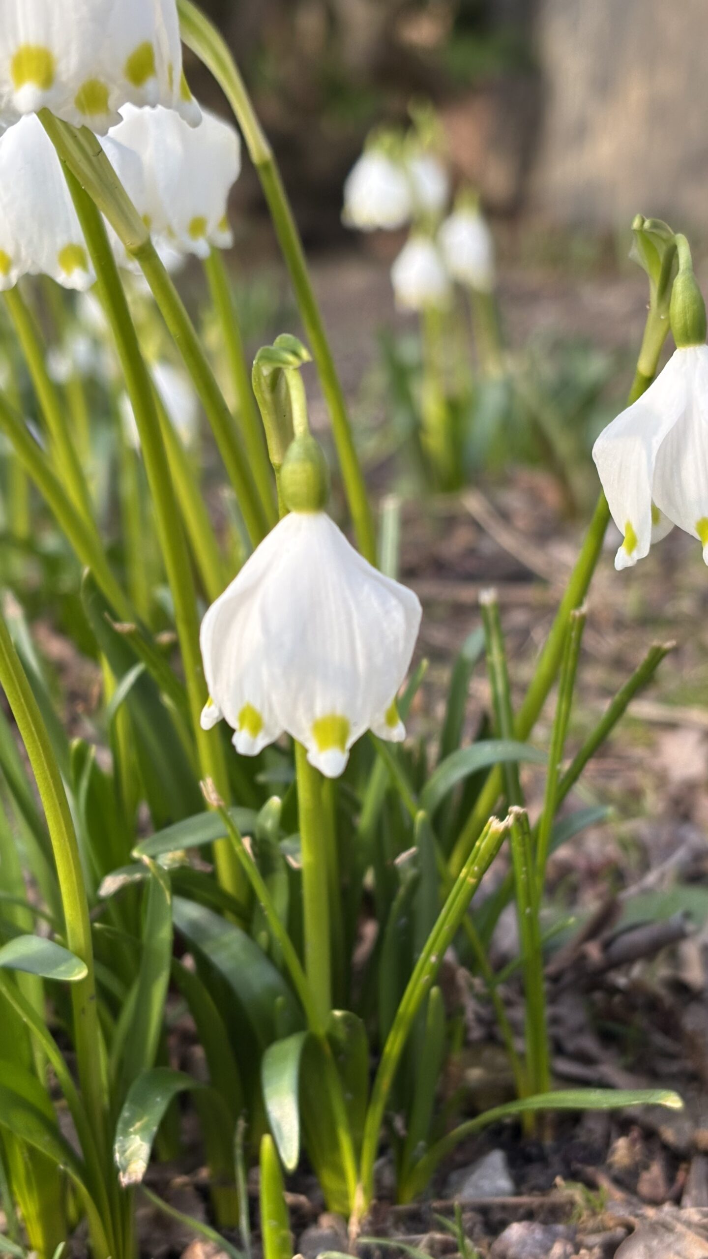 Vårblommande lökväxt med äkta lökar, växer sig till 20-30 cm hög. Blommar i mars-april med breda nickande och klocklika snövita blommor med sex lika stora kalkblad. Alla kalkblad med grön fläck vid basen (sinusmärke). Insänkt fruktämne. Kommer från C Ö S Europa.